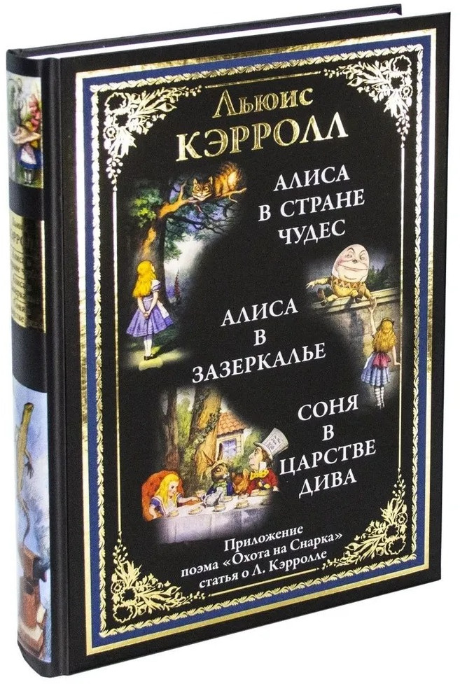Безусловный успех повести подтолкнул Кэрролла написать продолжение. «Алиса в Зазеркалье» была закончена в 1871 году. Эту повесть, не менее любопытную и парадоксальную, также иллюстрировал Тенниел. Через восемь лет появился первый перевод «Алисы в стране Чудес» на русский язык. Повесть называлась «Соня в царстве дива». Она была отпечатана в Москве без указания автора и переводчика. Этот раритетный текст включен в данный сборник, как и менее известное произведение Кэрролла — «Охота на Снарка». В XX веке начали появляться и другие переводы «Алисы» на русский. В данном сборнике опубликован перевод Александры Николаевны Рождественской. «Алиса в Зазеркалье» дается в переводе Владимира Александровича Ашкинази, который печатался под псевдонимом В. А. Азов. |