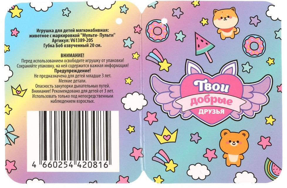 💳 Оплатить за товар можно при получении 🇰🇿 Есть бесплатная доставка по Казахстану от 1 дня 🎁 Копите бонусы с каждой покупки Озвученная мягкая игрушка «Губка Боб» ТМ «Мульти-Пульти» - отличный подарок для маленьких поклонников популярного мультфильма. Ребёнок будет рад знакомству с таким милым и очень мягким персонажем, который выглядит в точности как любимой мультгерой. С этой игрушкой ребёнок может воссоздать уже знакомые по мультику сюжеты или придумать новые. Губка Боб станет малышу добрым другом, которого можно взять с собой на прогулку или в поездку: благодаря небольшому размеру он не займёт много места в багаже. |