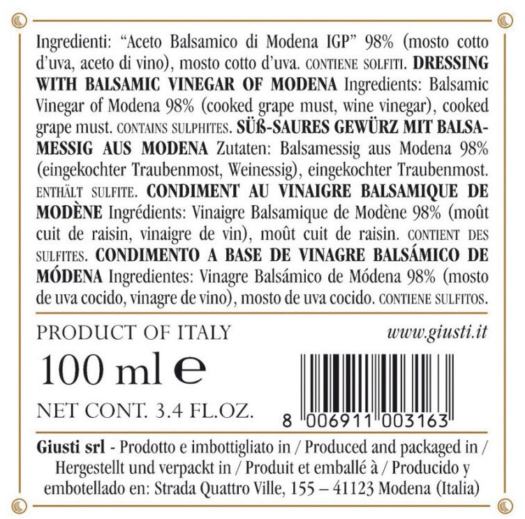Giusti Уксус бальзамический, 8 лет выдержки «2 Medaglie d’oro Il Classico Champagnotta»-25% +221