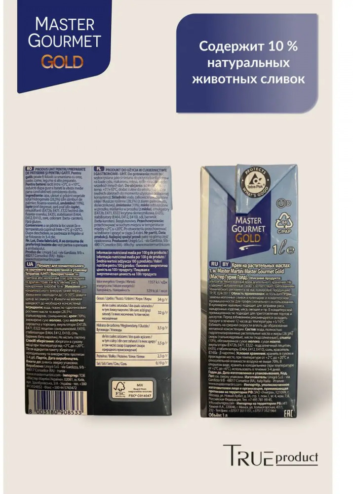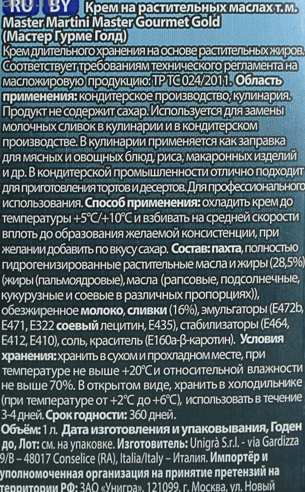 Master Martini Крем на растительных маслах для взбивания «Master Gourmet Gold»-25% +125