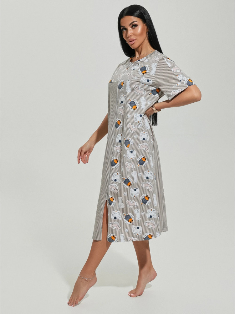 ткань не скатывается, но на нее все налипает, после стирки халат немного сел. Если у женщины большая грудь, то модель халата не подойдет. В груди некомфортно, в бедрах широко.