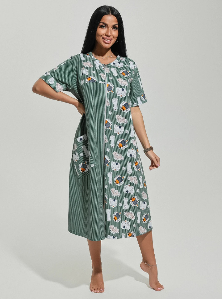 Удобный халат. Пошит хорошо. Смотрится оригинально. Идет в размер.