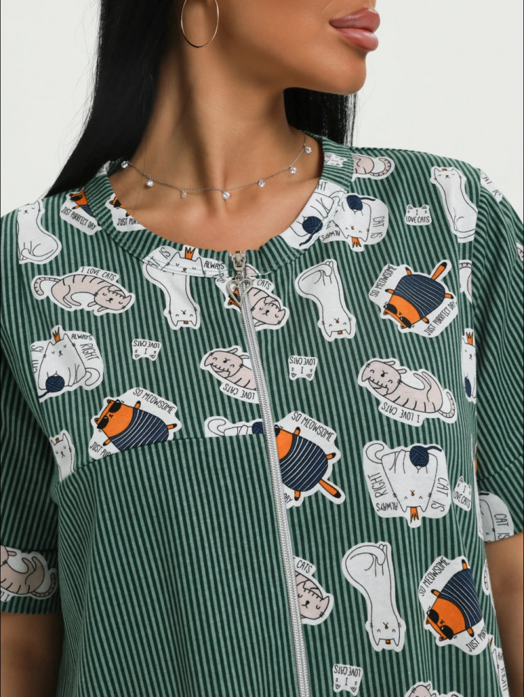 ткань не скатывается, но на нее все налипает, после стирки халат немного сел. Если у женщины большая грудь, то модель халата не подойдет. В груди некомфортно, в бедрах широко.