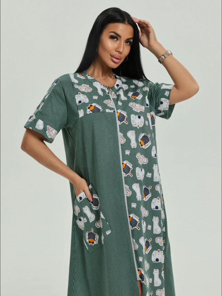 Удобный халат. Пошит хорошо. Смотрится оригинально. Идет в размер.