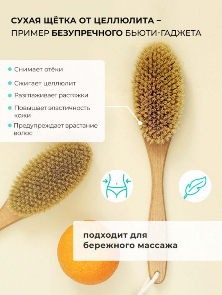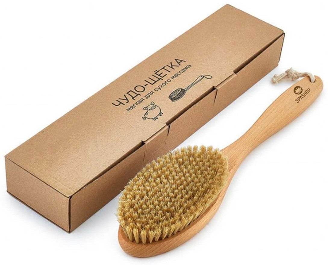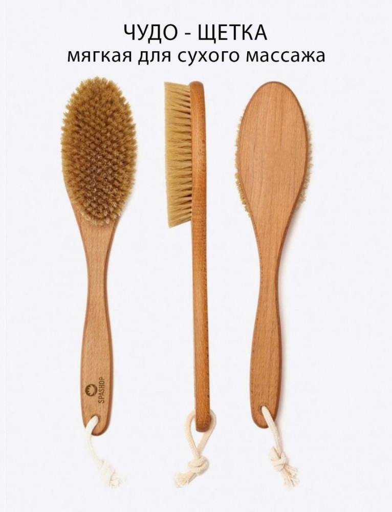 SpaShop Щетка для сухого массажа телаВ данный момент этот товар отсутствует в продаже. Возможно, у нас найдется аналогичный или похожий товар здесь. Мягкая чудо-щётка Spashop поможет избавиться от целлюлита и сделать кожу мягкой и нежной без дискомфорта. Сухой массаж щёткой — один из самых эффективных методов отшелушивания кожи и борьбы с целлюлитом. Массаж улучшает кровообращение и циркуляцию лимфы. Щетина щётки, изготовленная из волоса вепря, имеет среднюю жёсткость, поэтому подходит для чувствительной и нежной кожи. Эргономичная ручка выполнена из высококачественного бука, пропитанного пчелиным воском. Щётка подходит для массажа ног, рук, живота, ягодиц. Для достижения лучшего результата рекомендуется чередовать массаж щёткой с баночным массажем. |
