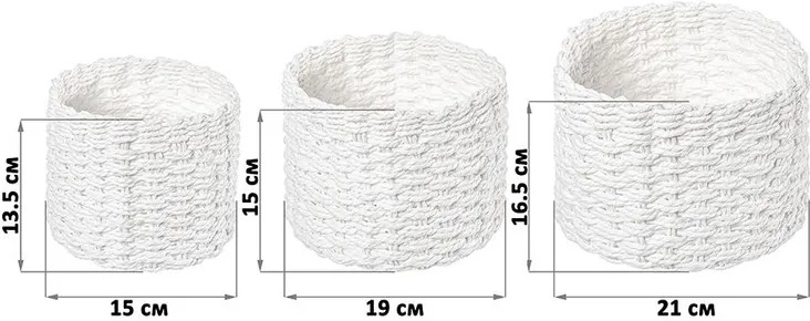 В комплект входят изделия размерами: 21×21×16.5 см, 19×19×15 см, 15×15×13.5 см.