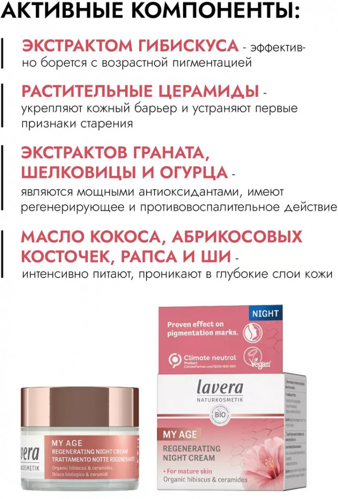 Lavera Регенерирующий ночной крем для лица «My Age»