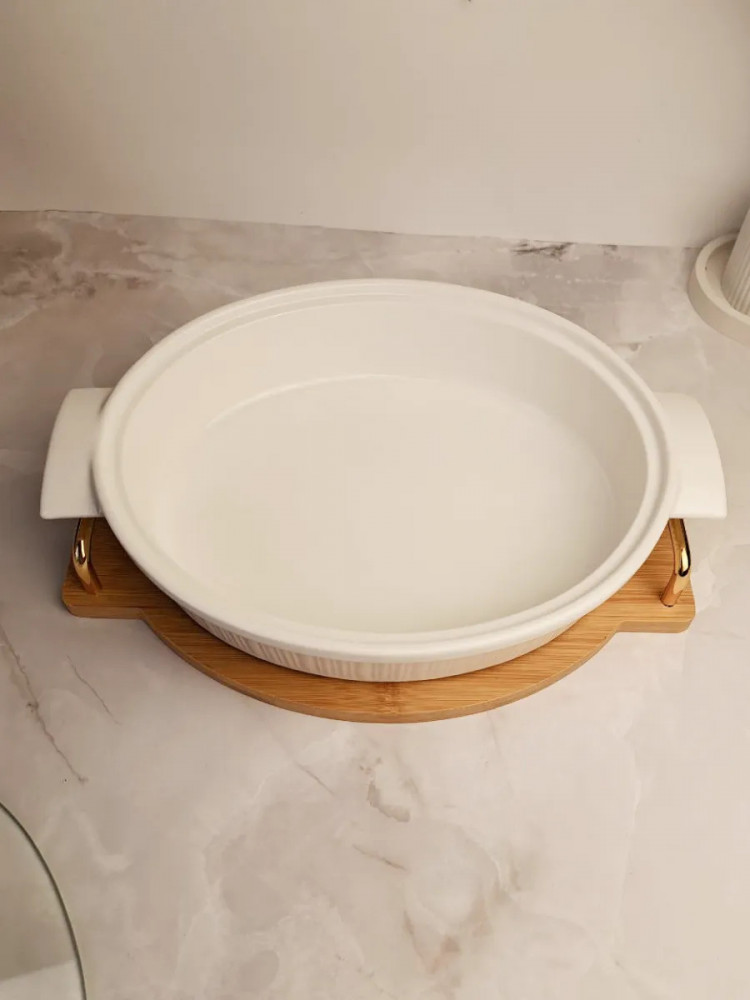 Красивое и функциональное блюдо. При запекании дно и стенки не пригорают. Очень удобная подставка. Спасибо изготовителям и магазину за своевременную доставку.8