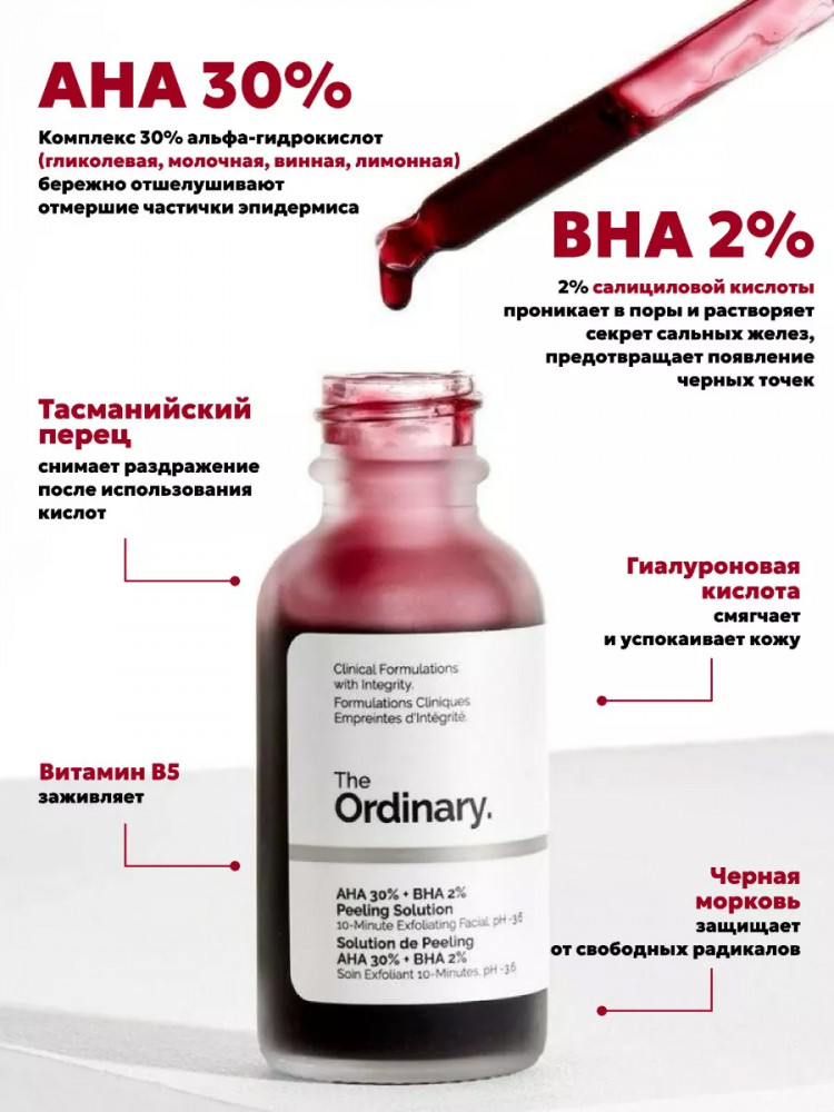 The Ordinary Кислотный пилинг для лица «AHA 30% + BHA 2% Peeling Solution»