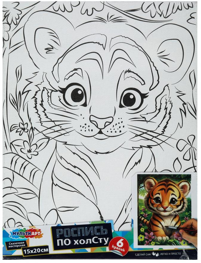 Набор для творчества — роспись по холсту «Тигрёнок» из серии «Сказочная мастерская» ТМ «Мульти Арт» станет отличным подарком для юных художников.