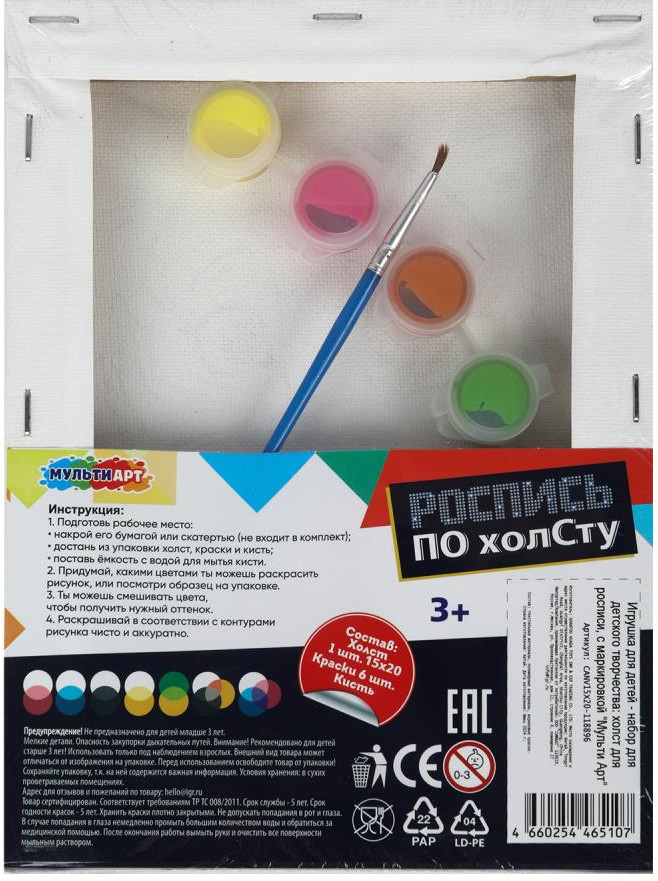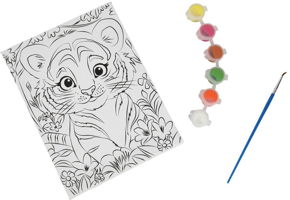 Ребёнок увлекательно и полезно проведёт время, расписывая холст с изображением милого тигренка. Благодаря подсказке на упаковке ребёнок сможет правильно подобрать цвета. Готовую картину можно повесить в комнате или использовать в качестве подарка, сделанного своими руками.