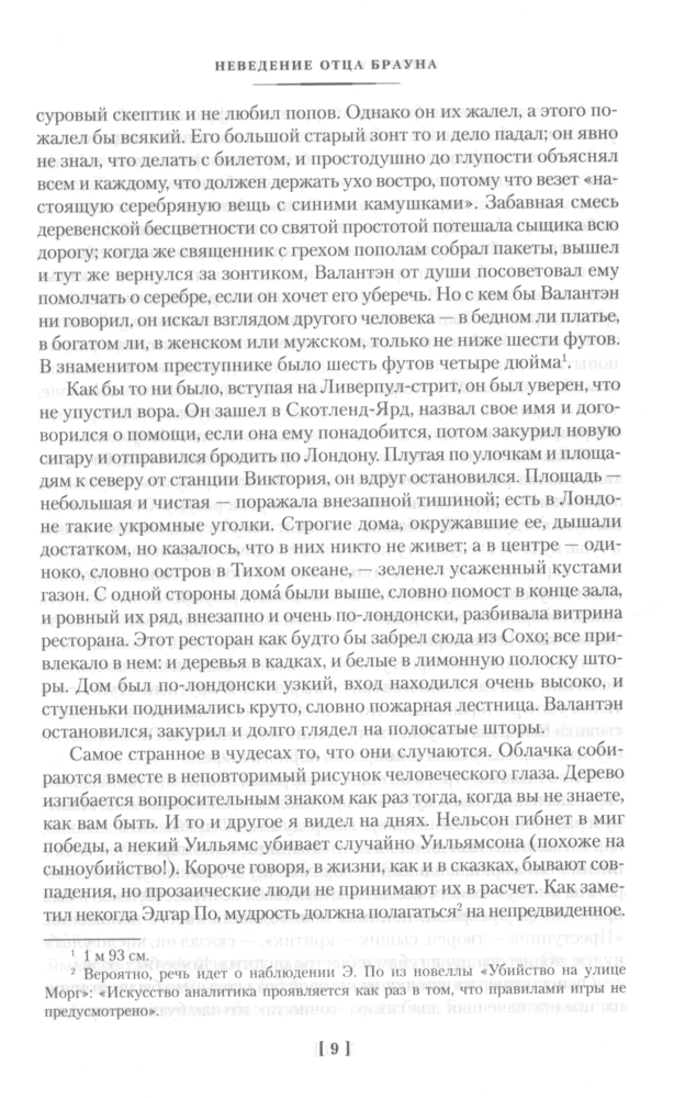 "Все расследования отца Брауна" Г. К. Честертон - книга большая, в красивом прочном переплёте, страницы белые. Шрифт мелкий, для чтения не удобно. Гораздо лучше было бы, издать книгу в 2-х томах. И шрифт был бы крупнее, и толщина книги более удобна для чтения. Однако - в этой книге полное собрание сочинений об отце Брауне, а содержание, безусловно, великолепное. Все любители книг это знают. Поэтому, несмотря на мои замечания о шрифте и толщине книги, ставлю 5.