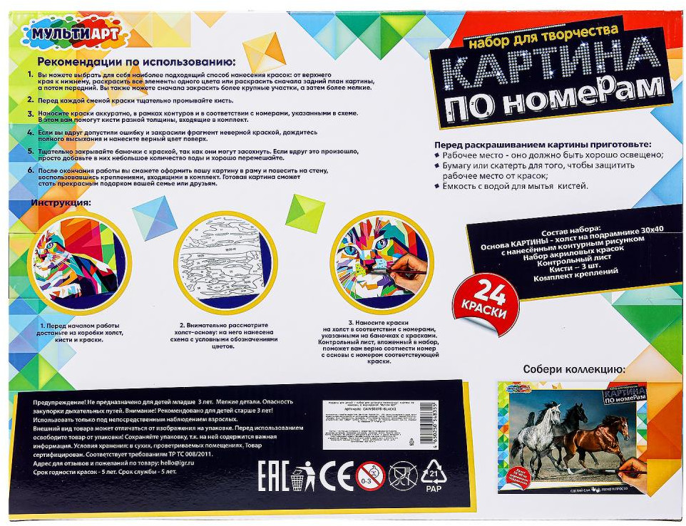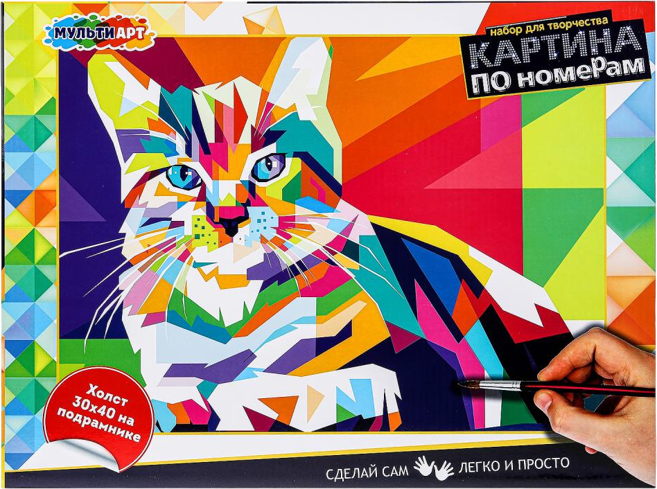 💳 Оплатить за товар можно при получении 🇰🇿 Есть бесплатная доставка по Казахстану от 1 дня 🎁 Копите бонусы с каждой покупки Картина по номерам «Кот» ТМ «Мульти Арт» — отличный подарок для маленького художника. Ребёнок увлекательно и с пользой проведёт время, расписывая холст с нанесённой основой и цветовыми подсказками. Готовую картину можно использовать для украшения комнаты или в качестве подарка, сделанного своими руками. |