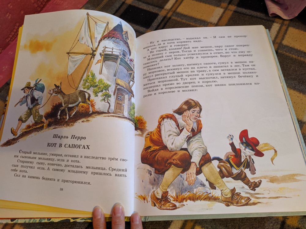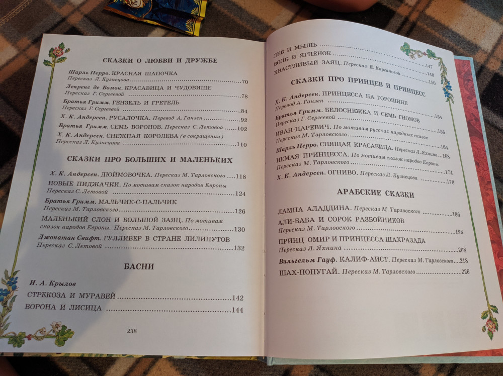 Получили книгу, спасибо за быструю доставку. Книга красочная, картинки интересные, очень хорошо, что в одной книге собраны сказки не только русских писателей. Одним словом доча восторге. Ещё один плюс шрифт не маленький, удобно читать.