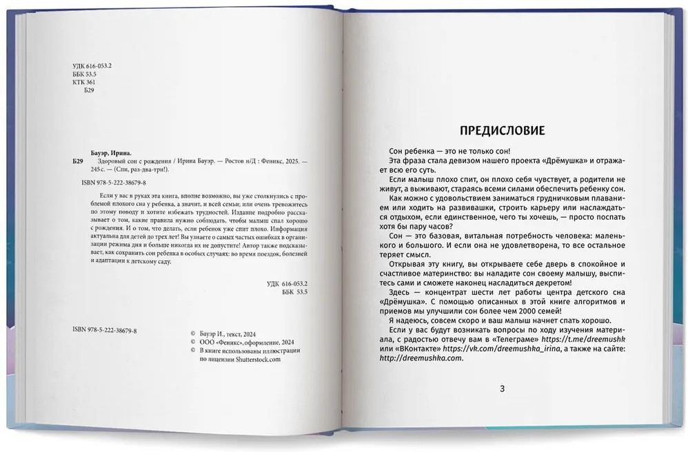 Здоровый сон с рожденияВ данный момент этот товар отсутствует в продаже. Возможно, у нас найдется аналогичный или похожий товар здесь. Серия: Спи, раз-два-три! Если у вас в руках эта книга, вполне возможно, вы уже столкнулись с проблемой плохого сна у ребенка, а значит, и всей семьи; или очень тревожитесь по этому поводу и хотите избежать трудностей. Издание подробно рассказывает о том, какие правила нужно соблюдать, чтобы малыш спал хорошо с рождения. И о том, что делать, если ребенок уже спит плохо. Информация актуальна для детей до трех лет! Вы узнаете о самых частых ошибках в организации режима дня и больше никогда их не допустите! Автор также подсказывает, как сохранить сон ребенка в особых случаях: во время поездок, болезней и адаптации к детскому саду. |