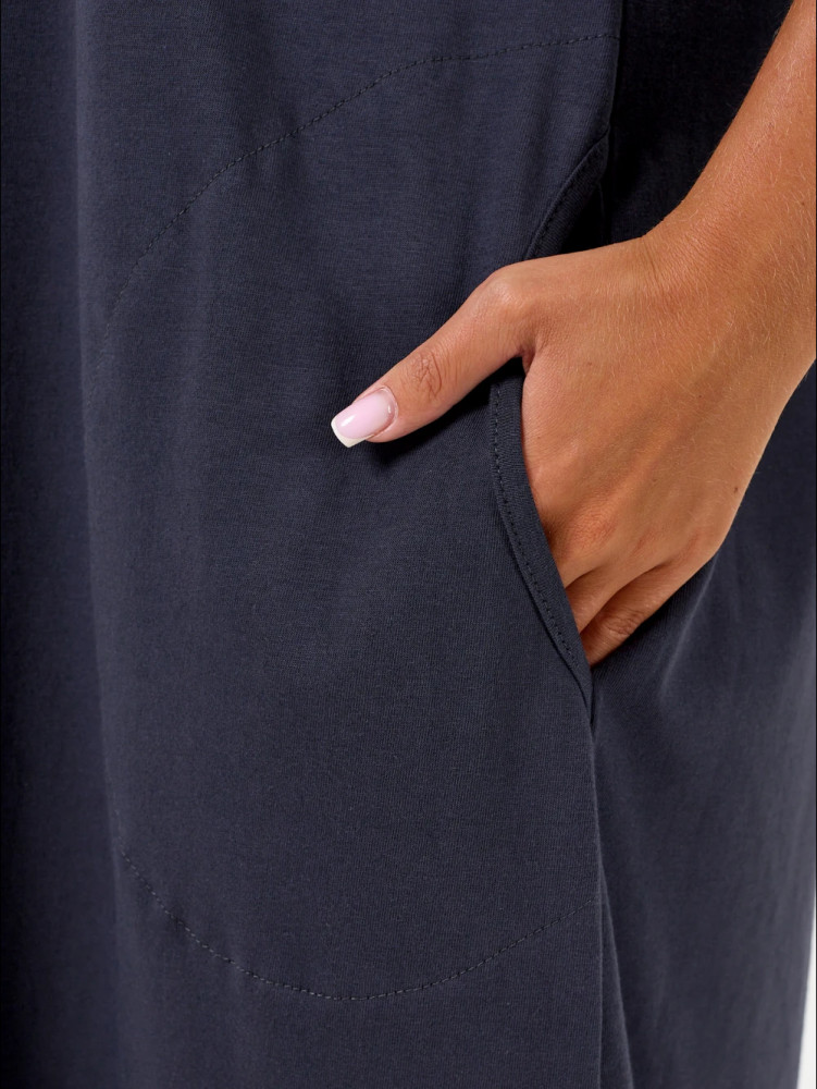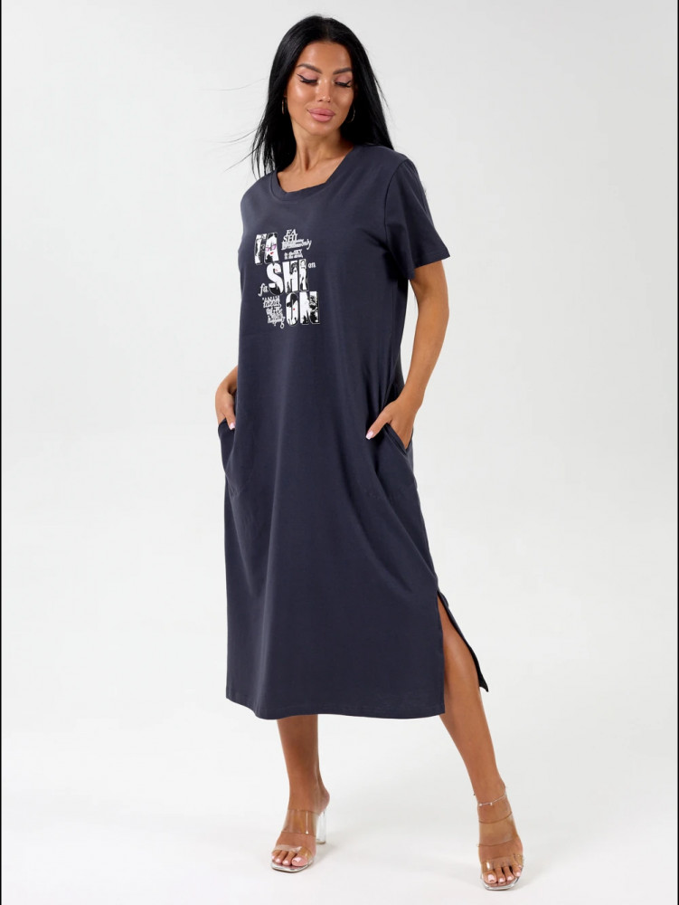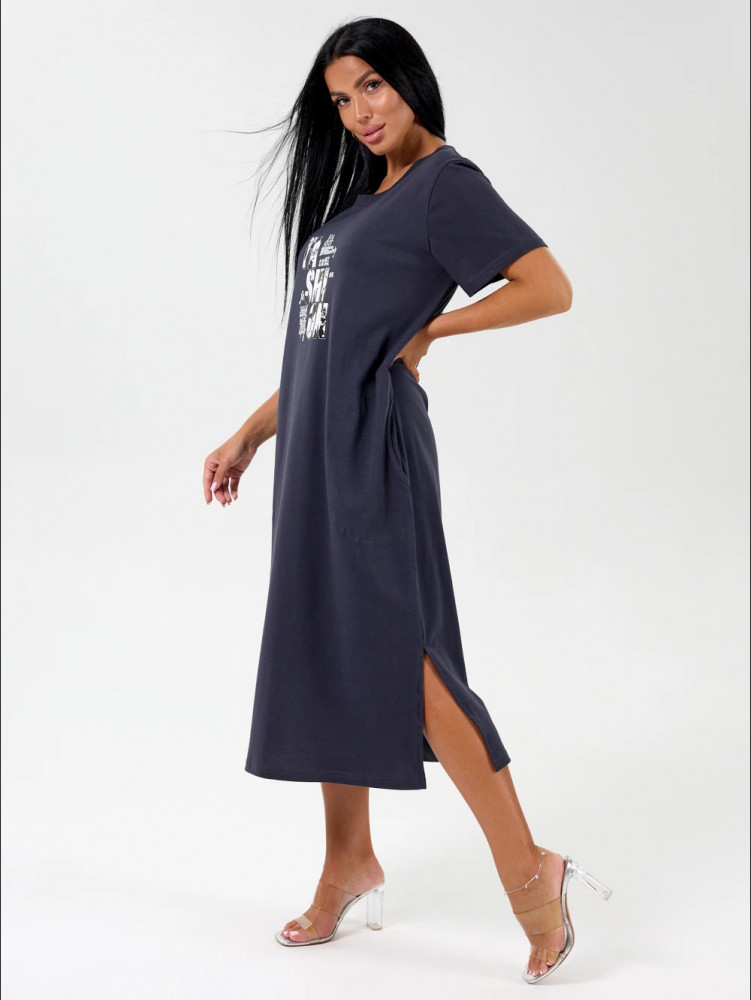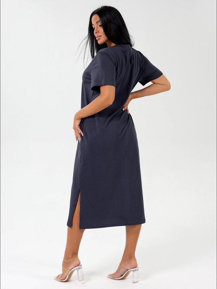 очень понравилось платье. Цвет интересный, между темно- синим и графит, комфортная телу ткань, сидит отлично, стройнит