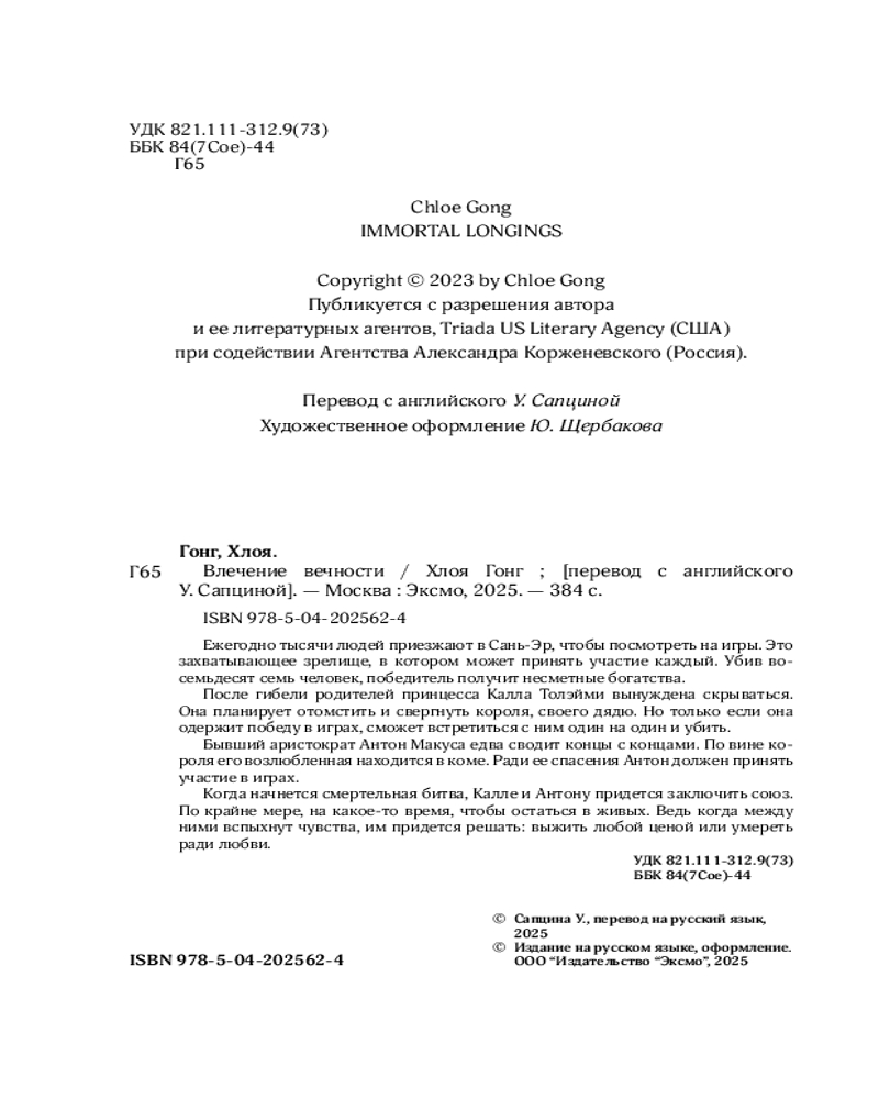 💳 Оплатить за товар можно при получении 🇰🇿 Есть бесплатная доставка по Казахстану от 1 дня 🎁 Копите бонусы с каждой покупки Серия: Young Adult. Бессмертные боги Хлои Гонг Ежегодно тысячи людей приезжают в Сань-Эр, чтобы посмотреть на игры. Это захватывающее зрелище, в котором может принять участие каждый. Убив восемьдесят семь человек, победитель получит несметные богатства. После гибели родителей принцесса Калла Толэйми и вынуждена скрываться. Она планирует отомстить и свергнуть короля, своего дядю. Но только если она одержит победу в играх, то сможет встретиться с ним один на один и убить. |