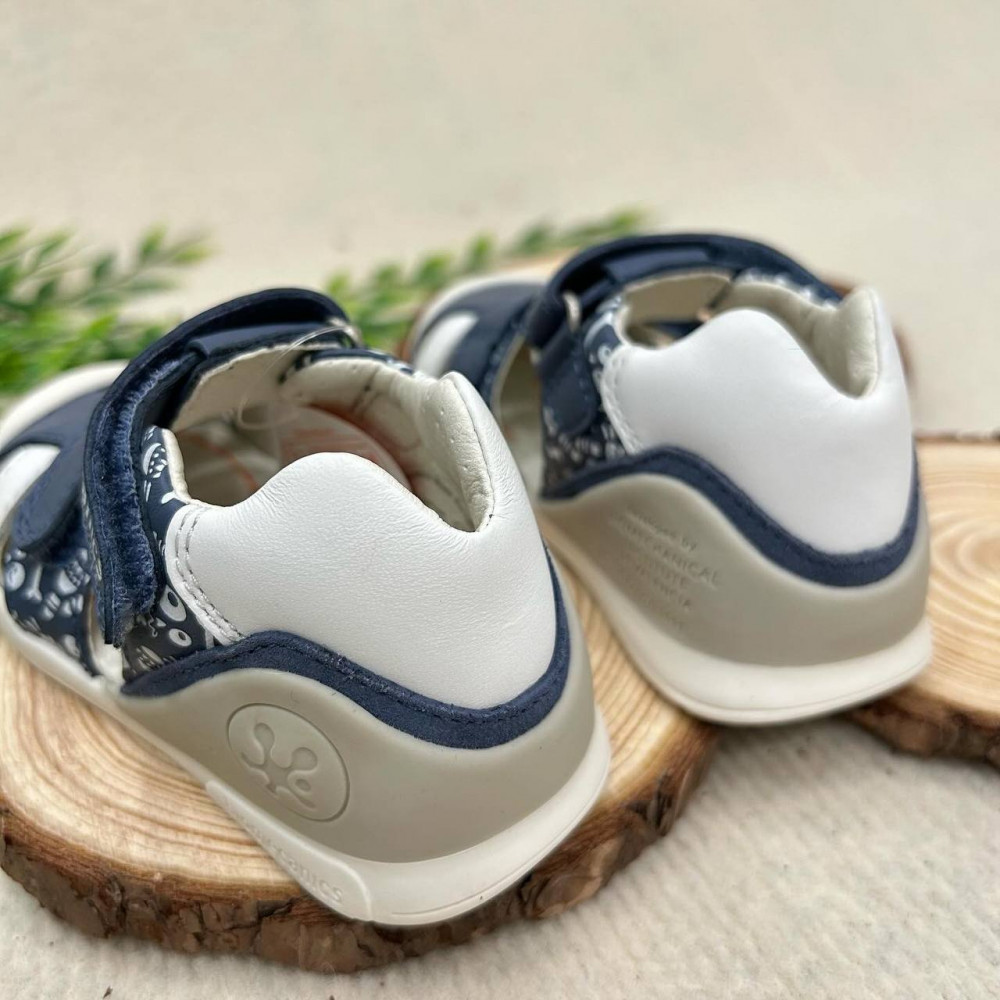 Закрытые сандалии из серии «Первые шаги». Производство Испания. Стильный дизайн, подходящий под любую одежду. Выполнены полностью из натуральной кожи. Эта обувь из серии Biogateo предназначена для первых передвижений ребенка — этапа ползания и первой самостоятельной ходьбы. В ней сочетаются инновационные технологии и магия, которые защищают особенно уязвимые участки ножки малыша, помогают ему лучше отталкиваться при ползании, устойчиво стоять и ходить, позволяют ноге дышать. Антибактериальная обработка защищает ножку от запахов и прелости, анатомические стельки способствуют правильному формированию стопы. Это обувь, в которой малыш должен делать свои первые шаги и прыжки.