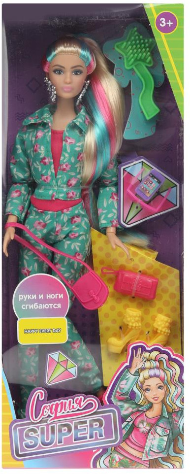 Карапуз Кукла «София Super»В данный момент этот товар отсутствует в продаже. Возможно, у нас найдется аналогичный или похожий товар здесь. Серия: София и Алекс Суперстильная София одета в розово-зелёный брючный костюм с цветочным принтом, образ дополняют модные серьги. Одежду и аксессуары легко снять и надеть. С такой модной куклой девочке будет интересно и весело играть: благодаря тому, что руки и ноги куклы подвижны, им можно придать любое положение. У Софии очень длинные красивые волосы с цветными прядями, которые хозяйка куклы сможет заплетать в разные причёски. Наличие дополнительных аксессуаров в наборе сделает игры с куклой более разнообразными и интересными. |