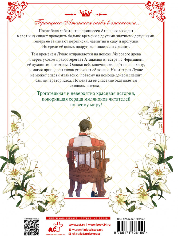 💳 Оплатить за товар можно при получении 🇰🇿 Есть бесплатная доставка по Казахстану от 1 дня 🎁 Копите бонусы с каждой покупки Серия: Вебтун. Однажды я стала принцессой После бала дебютанток принцесса Атанасия выходит в свет и начинает проводить больше времени с другими знатными девушками. Теперь её занимают переписки, чаепития в саду и прогулки. Но среди её новых подруг оказывается и Дженит. Тем временем Лукас отправляется на поиски Мирового древа и перед уходом предостерегает Атанасию от встреч с Чернышом, её духовным питомцем. Однако всё, конечно же, идёт не по плану, и магия принцессы снова угрожает её жизни. На этот раз Лукас не может спасти Атанасию, поэтому на помощь дочери спешит сам император Клод. Но цена за её спасение оказывается слишком высока... |