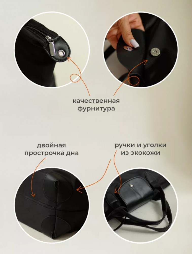 Сөмке тозуға төзімді су өткізбейтін оксфорд материалынан жасалған, оған ерекше сүйкімділік беретін талғампаз эко былғары екпіндері бар. Біркелкі тігістер мен түбінің екі еселенген микробағдарламасы біздің сөмкемізді берік және сенімді етеді. Үлкен көлем киім, аяқ киім, сүлгі, құжаттар, косметикалық сөмке, телефон және басқа керек-жарақтарды орналастыруға мүмкіндік береді. Әмбебап сөмкенің ішінде бір сыдырма қалта және екі Ашық қалта бар. Су өткізбейтін материалдың арқасында сіз заттарыңыздың элементтерден, кірден және кездейсоқ дақтардан қорғалатынына сенімді бола аласыз. Біздің сөмке күнделікті қолдануға арналған сүйікті аксессуар болады!