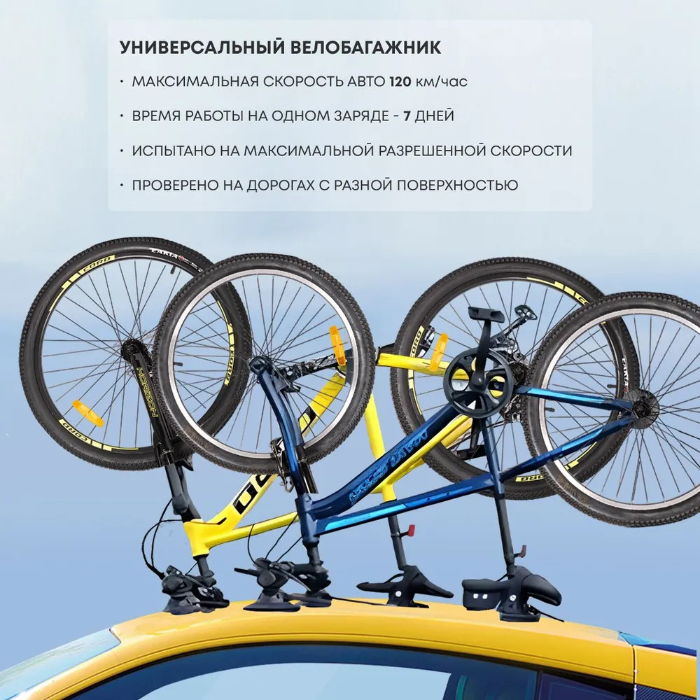 💳 Оплатить за товар можно при получении 🇰🇿 Есть бесплатная доставка по Казахстану от 1 дня 🎁 Копите бонусы с каждой покупки Данная модель предназначена для расширения системы ES-H1B для перевозки двух велосипедов на крыше автомобиля колёсами вверх. Модель укомплектована тремя мощными вакуумными присосками с моментом отрыва 114 кг. Система всего за 5 мин. устанавливается на крышу автомобиля и подходит для 90% автомобилей на рынке, что делает ее универсальной в сравнении с металлическими багажниками. Система позволяет передвигаться на автомобиле с велосипедами на крыше со скоростью до 120 километров в час. |