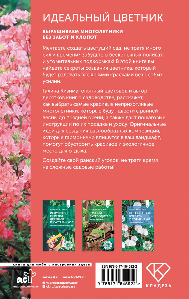 💳 Оплатить за товар можно при получении 🇰🇿 Есть бесплатная доставка по Казахстану от 1 дня 🎁 Копите бонусы с каждой покупки Серия: Советы опытного дачника Мечтаете создать цветущий сад, не тратя много сил и времени? Забудьте о бесконечных поливах и утомительных подкормках! В этой книге вы найдете секреты создания цветника, который будет радовать вас яркими красками без особых усилий. Галина Кизима, опытный цветовод и автор десятков книг о садоводстве, расскажет, как выбрать самые красивые неприхотливые многолетники, которые будут цвести с ранней весны до поздней осени, а также даст пошаговые инструкции по их посадке и уходу. Оригинальные идеи для создания разнообразных композиций, которые гармонично впишутся в ваш ландшафт, помогут обустроить красивое и экологичное место для отдыха. Создайте свой райский уголок, не тратя время на сложные садовые работы! |