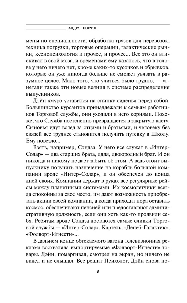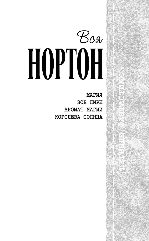 Я очень долго не могла купить данную книгу. Именно эта серия у Андрэ Нортон мне нравится. Прочитала эти произведения давно ещё лет 20 назад и с тех пор регулярно раз в 2-3 года перечитываю. Как и любая Великая книга она не может надоесть. Советую любителям фантастики. Я счастлива, что она есть у меня в библиотеки и в том хорошем и качественном исполнении.