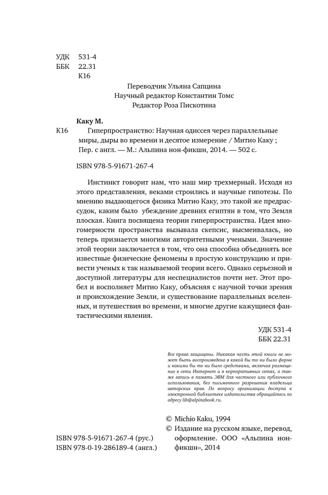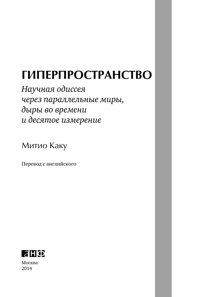 Гиперпространство. Научная одиссея через параллельные миры, дыры во времени и десятое измерениеВ данный момент этот товар отсутствует в продаже. Возможно, у нас найдется аналогичный или похожий товар здесь. «Завораживающе... Читатель ошеломлен, вдохновлен и смотрит на мир в буквальном смысле новым, революционным взглядом». |