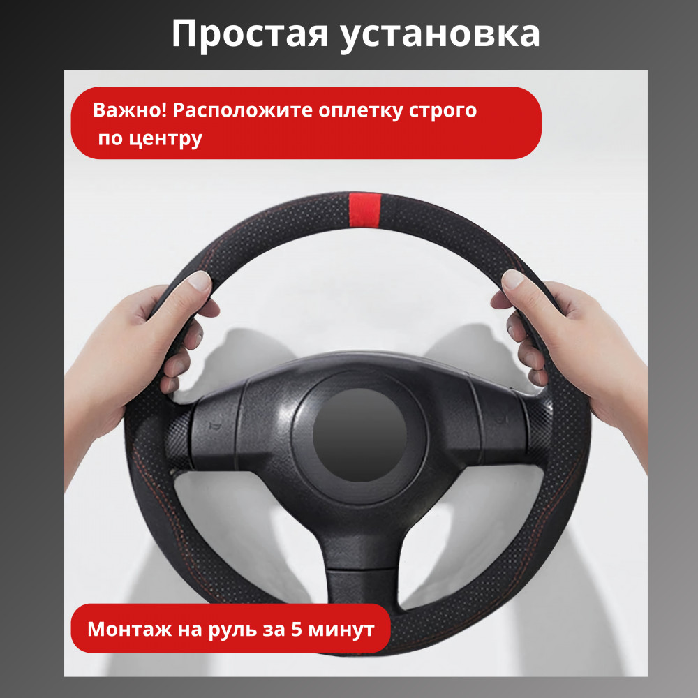 Оплетка на руль из алькантары (искусственная замша) имеет стильный эргономичный дизайн, который подчеркнет стиль вашего авто. Универсальный размер подходит для большинства моделей легковых автомобилей с диаметром руля 37-39 см. Важно правильно измерить диаметр рулевого колеса перед заказом! И предварительно прогреть салон авто в холодное время года, для более легкой установки чехла. Чехол выполнен из приятного на ощупь антискользящего безворсового материала, который обеспечит комфорт вождения. Относительно тонкая модель чехла хорошо садится на рулевое колесо и не создает излишнего объема. Бархатистая текстура покрытия впитывает влагу, что позволит избежать скольжение ладоней на руле. Подходит для использования в любой сезон года. Чехол легок и прост в уходе — достаточно очистки слегка влажной тканью или салфеткой. Хорошие износостойкие характеристики и простота в установке и эксплуатации.