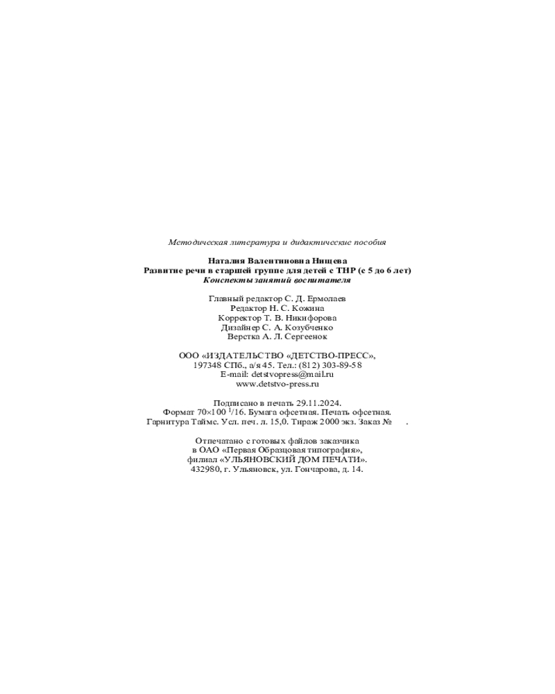 Развитие речи в старшей группе для детей с ТНР. Конспекты занятий воспитателя-25% +37