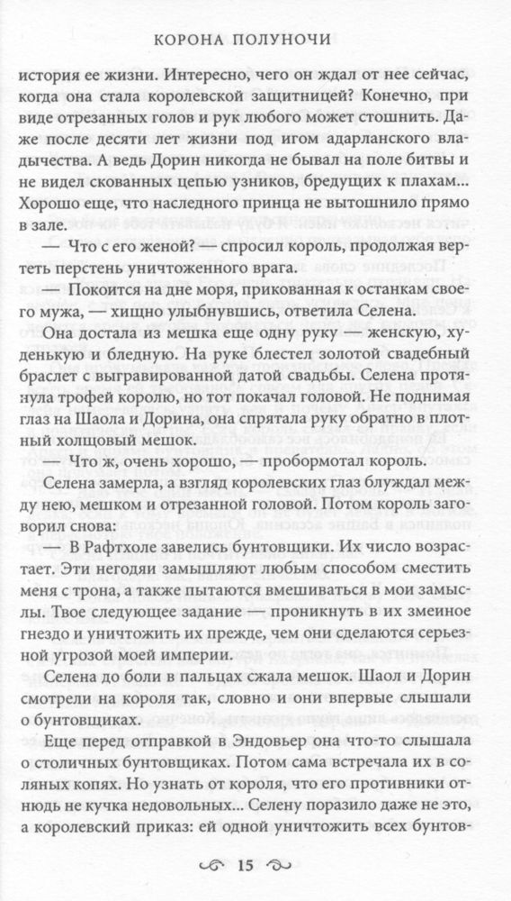 В данный момент этот товар отсутствует в продаже. Возможно, у нас найдется аналогичный или похожий товар здесь. Серия: Lady Fantasy Победив в жестком состязании, Селена Сардотин, самая известная женщина-ассасин в Ардаланском королевстве, получает титул королевской защитницы. Эта должность почетная и опасная, ведь душа короля чернее смолы, а его железная рука не знает пощады. Селене хорошо это известно, но тайная цель, которую она скрывает даже от самых близких друзей и ради которой одержала победу, превыше любой опасности…