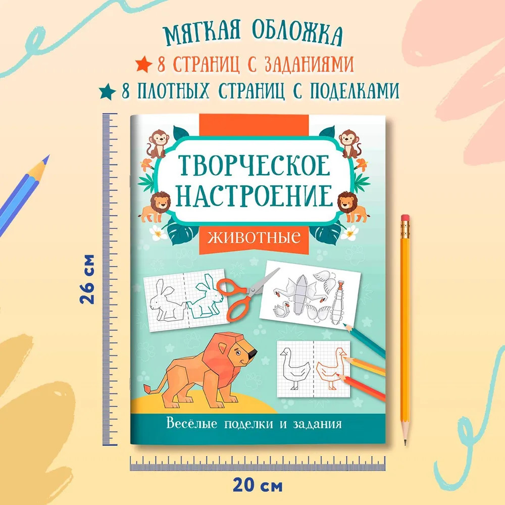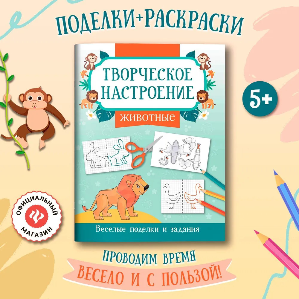 Книжка-раскраска «Животные». Весёлые поделки и задания-25%