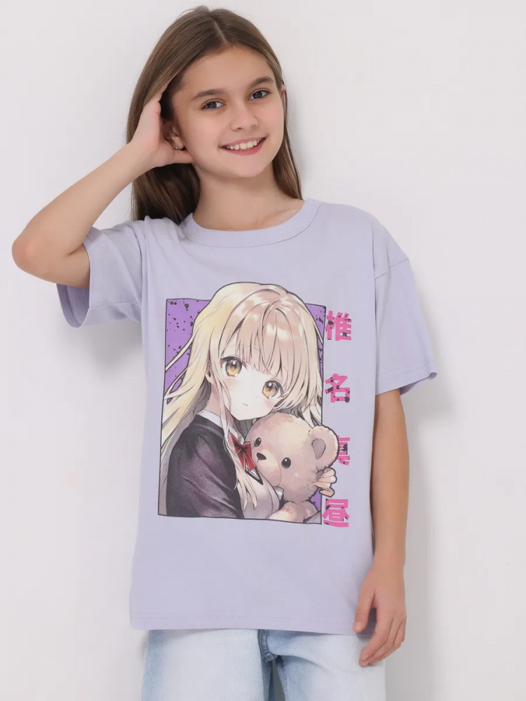 Апрель Футболка для девочек «Аниме с тедди»