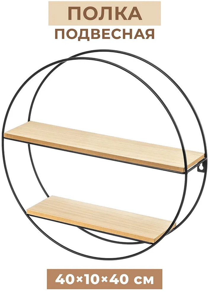 В данный момент этот товар отсутствует в продаже. Возможно, у нас найдется аналогичный или похожий товар здесь. Подвесная двухъярусная полка 40×10×40 см выполнена из дерева и металла. Металлический держатель чёрного цвета имеет круглую форму, что придаёт изделию оригинальности несмотря на минималистичный дизайн. Размер нижнего яруса 28×10×1 см, размер верхнего яруса 39×10×1 см, расстояние между полками 14 см. Настенная полочка украсит интерьер вашей прихожей, кухни или коридора и поможет держать все нужные мелочи под рукой. На железном каркасе есть отверстия для подвешивания.