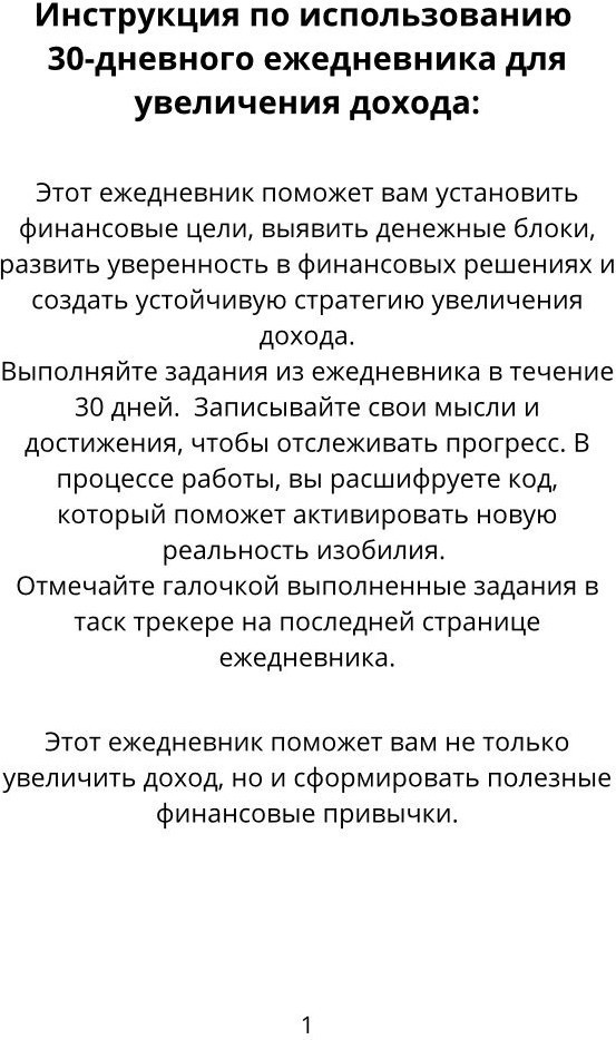 Ежедневник «30 дней к увеличению дохода»В данный момент этот товар отсутствует в продаже. Возможно, у нас найдется аналогичный или похожий товар здесь. Этот уникальный 30-дневный ежедневник заменит вам месячную работу с коучем. Он создан для тех, кто готов выйти на новый уровень дохода и осознанности. В течение 30 дней вас ждут простые, но мощные задания, которые помогут сформировать позитивные финансовые привычки, распознать новые возможности и увеличить свой доход, шаг за шагом активируя денежные потоки в своей жизни. |