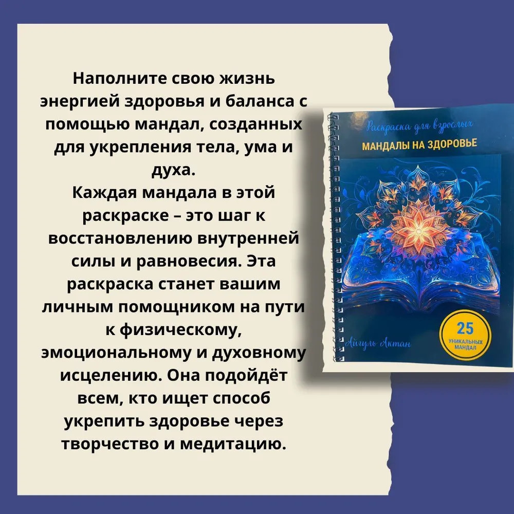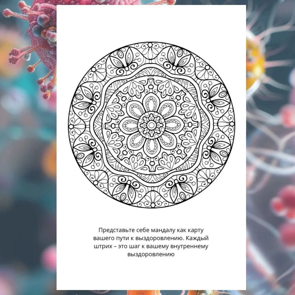Почему это работает? Раскрашивание мандал — это особая форма арт-терапии. Когда вы сосредотачиваетесь на узорах, ваш разум успокаивается, а тело начинает восстанавливаться. Каждая мандала в этой раскраске создавалась с намерением пробудить силы природы, заложенные в каждом из нас. Она подойдёт всем, кто ищет способ укрепить здоровье через творчество и медитацию. Создавайте здоровье своими руками.