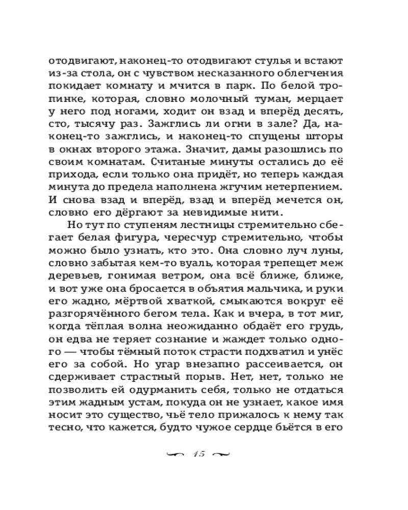 В книгу вошли знаменитые новеллы классика европейской литературы Стефана Цвейга: «В сумерках», «Гувернантка», «Летняя новелла», «Амок», «Письмо незнакомки», «Улица в лунном свете», «Двадцать четыре часа из жизни женщины», «Незримая коллекция», «Лепорелла». Их объединяет динамичное повествование и предельно точное исследование всех граней любви: от бескорыстной преданности до одержимости. |