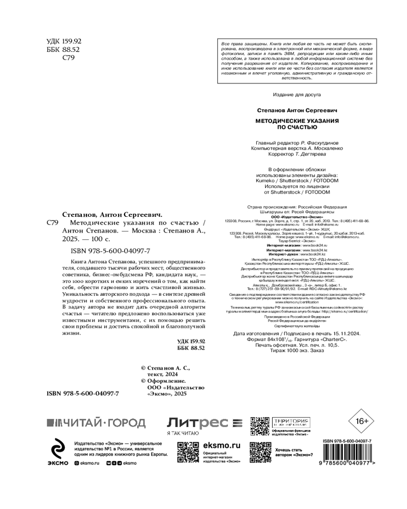 Серия: Методические указания по счастью Антон Степанов — успешный предприниматель, создавший тысячи рабочих мест, общественный советник бизнес-омбудсмена РФ, кандидат наук. |