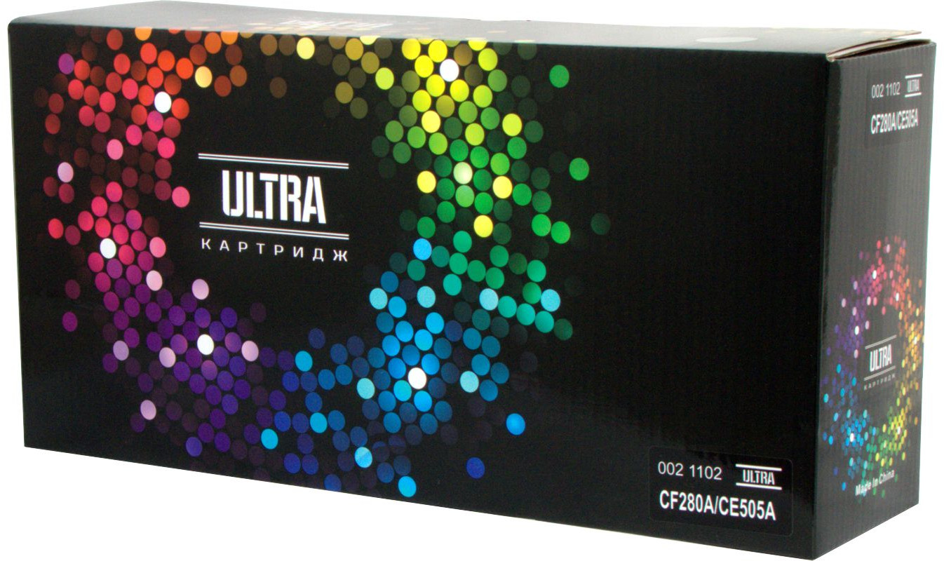 Картридж лазерный ULTRA CF280A/CE505A с чипом для принтеров производства HP и Canon. Высший сорт, гарантия 2 года. Количество страниц для монохромных картриджей указано по стандарту ISO/IEC 19752.