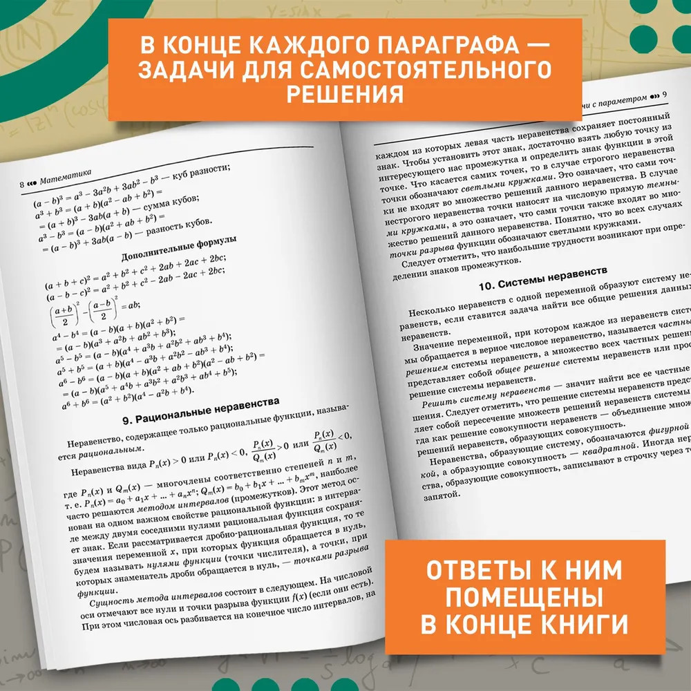 💳 Оплатить за товар можно при получении 🇰🇿 Есть бесплатная доставка по Казахстану от 1 дня 🎁 Копите бонусы с каждой покупки Серия: Большая перемена В предлагаемом пособии представлен обширный материал, посвященный двум заключительным и сложным темам ЕГЭ профильного уровня: задачам с параметрами и числам и их свойствам. На многочисленных примерах с подробными решениями и обоснованиями (как и требуется на экзамене) показаны различные методы и решения задач. |