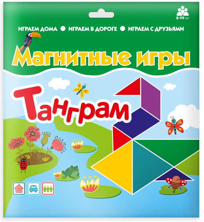 Магнитная игра «Танграм» — это старинная китайская головоломка в удобном компактном формате. Игроку нужно подобрать фигуры так, чтобы из них получилось изображение животного или птицы. Головоломка понравится не только детям, но и их родителям, она хорошо развивает пространственное мышление и поможет запомнить названия фигур. Игра упакована в плотный конверт.