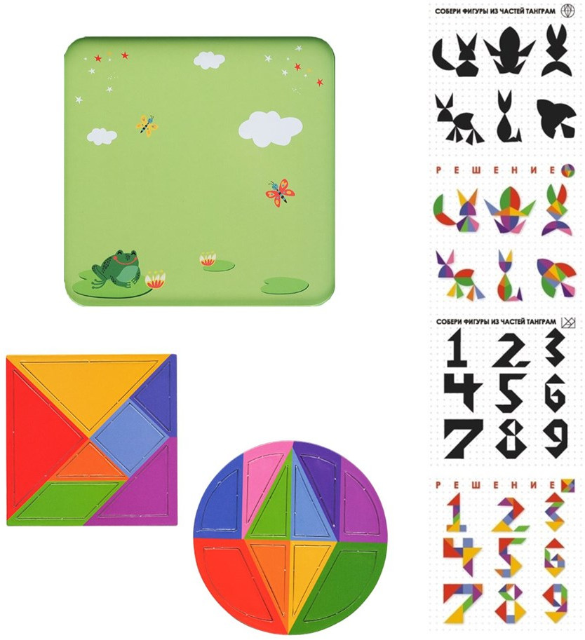 Собирайте различные фигуры из цветных деталей. Придётся постараться, ведь в правилах даны только очертания фигур. Подойдут только несколько деталей определённой формы. «Танграм» развивает усидчивость и логическое мышление.