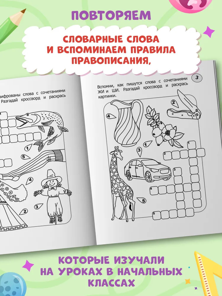 Кроссворды-раскраски по русскому языку для детей 7-10 лет-40% +12