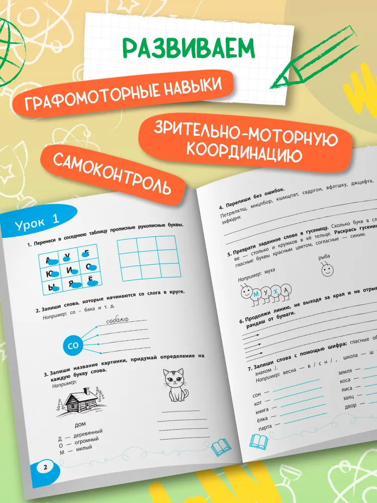 💳 Оплатить за товар можно при получении 🇰🇿 Есть бесплатная доставка по Казахстану от 1 дня 🎁 Копите бонусы с каждой покупки Серия: Игрошкола Упражнения, предложенные в сборнике, составлены с учётом созревания головного мозга ребёнка и направлены на создание предпосылок для успешного усвоения процесса формирования письма. Главная цель тренажёра — формирование зрительного восприятия, развитие зрительного внимания, усидчивости, преодоление импульсивности, закрепление образа букв, расширение словарного запаса и звуко-буквенного анализа, а также развитие графомоторных навыков, зрительно-моторной координации и самоконтроля. Пособие ориентировано на детей младшего школьного возраста. |
