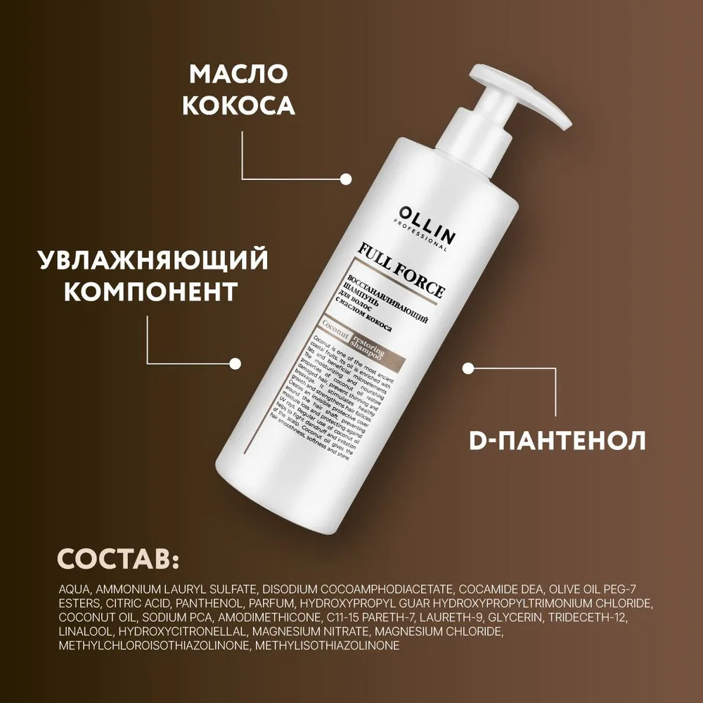 Ollin Professional Шампунь для волос интенсивно восстанавливающий с маслом кокоса