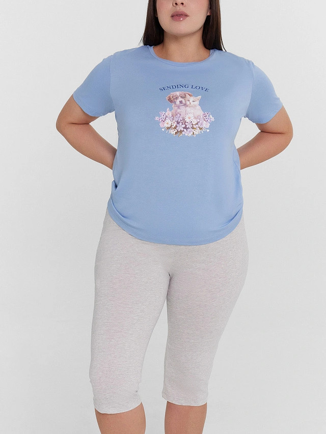 Название цвета: пыльно-голубой + серый меланж 4306-А + печать