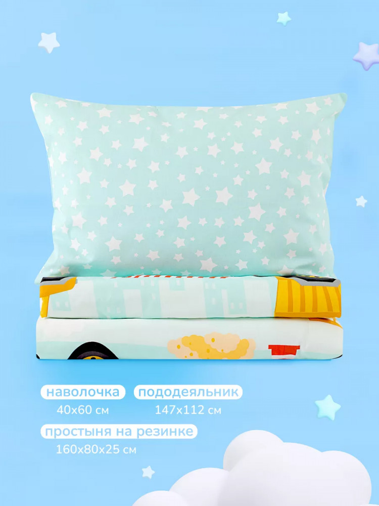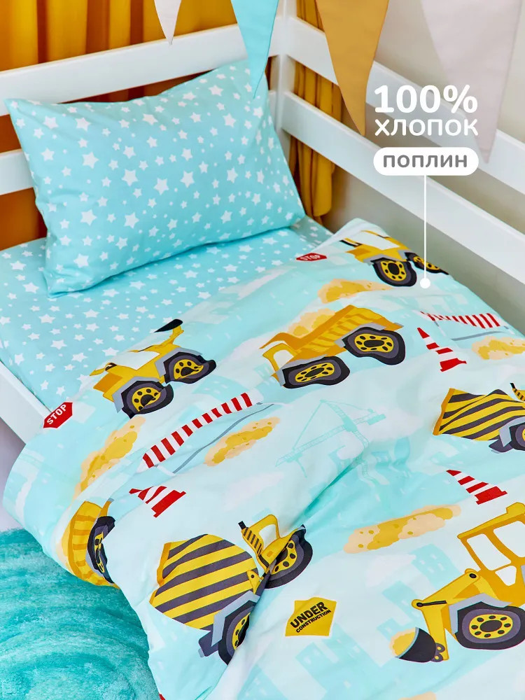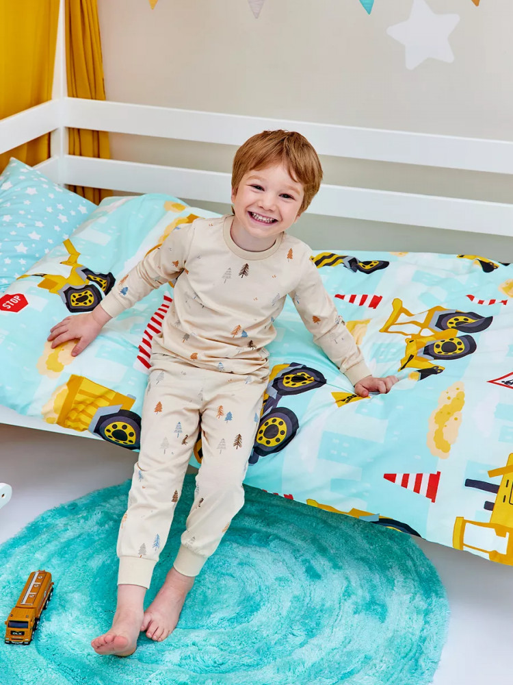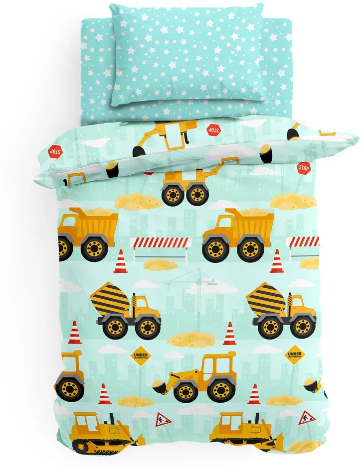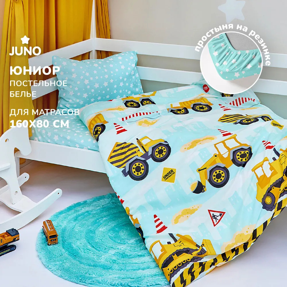 Juno Комплект детского постельного белья «Строительный транспорт»В данный момент этот товар отсутствует в продаже. Возможно, у нас найдется аналогичный или похожий товар здесь. Детский комплект постельного белья идеально подойдёт для детской кроватки с матрасом 160×80 см. Комплект от JUNO обеспечит вашему ребенку крепкий сон. Милые и красочные рисунки в сочетании с мягкой и прочной тканью сделают комнату гораздо уютнее. Односпальный комплект в детскую кроватку — лучший подарок ребёнку. Красивый набор, включающий в себя пододеяльник 147×112 см, простынь на резинке по углам 160×180×25 см и наволочку 40×60 см, сделан из поплина. Эта экологичная ткань из 100% хлопка хорошо впитывает влагу, отличается долговечностью и легкостью в уходе. Сертифицированное и гипоаллергенное белье, соответствующее стандартам ГОСТ. Для юных энтузиастов, интересующихся строительными машинками, экскаватор, как и пожарная машина — не пустой звук. Желтый строительный транспорт и специальные знаки разбудят у ребёнка интерес к стройке, мотивируя его расширить свой кругозор. Голубые простыня и наволочка с белыми звездами, которые успокаивают перед сном, красиво сочетаются с голубым пододеяльником, изображающим спецтехнику: грузовик, трактор и ещё одну машинку. |