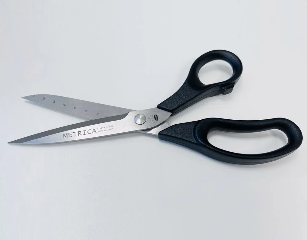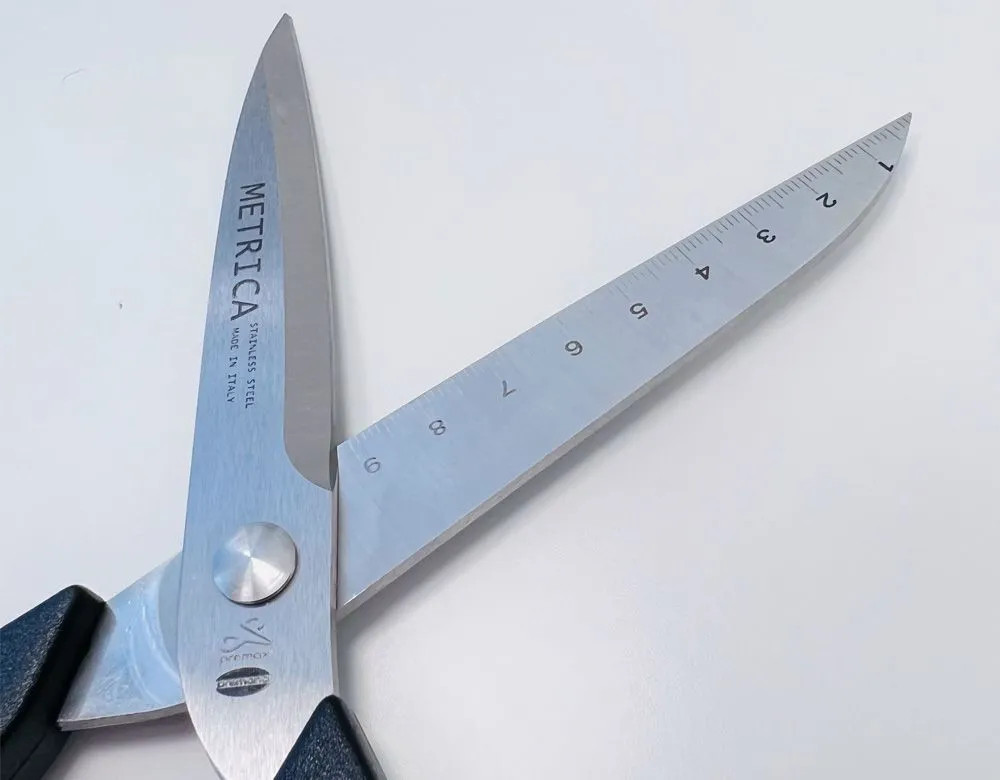 Ножницы серии Collection Metrica идеально подходят для лоскутного шитья, аппликаций и других видов работ, требующих точности кроя. Лезвия выполнены из нержавеющей стали AISI 420 и затачиваются на специальных высокотехнологичных машинных установках, позволяющих добиться идеальной остроты заточки и максимального срока службы ножниц. Кромка ножниц — микрозубчатая. Эргономичные и надежные нейлоновые ручки с прорезиненным покрытием обеспечивают удобный захват, поэтому ваша рука не устанет при долгой работе.