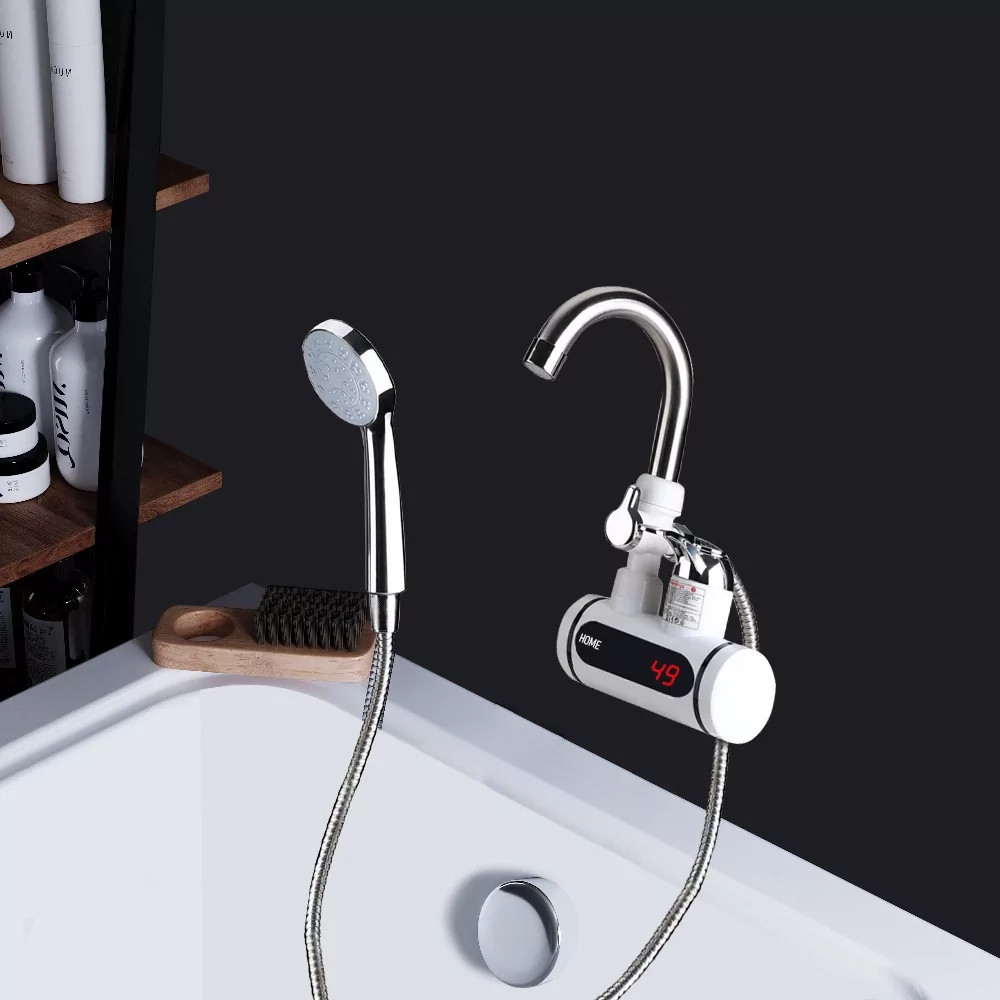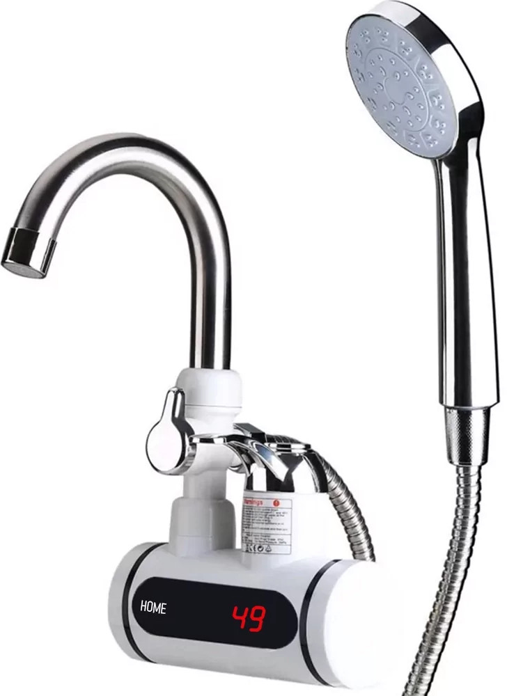 💳 Оплатить за товар можно при получении 🇰🇿 Есть бесплатная доставка по Казахстану от 1 дня 🎁 Копите бонусы с каждой покупки Проточный водонагреватель — это инновационный смеситель для душа с независимым подогревом воды. (Второй шланг в подарок) Прекрасно подойдет для установки в квартире, на даче, бытовых помещениях общественного пользования, где невозможно установить газовую колонку либо бойлер. Этот проточник состоит из термостойкого корпуса белого цвета, внутри нагревательные элементы. Регулировка температуры и напора струи осуществляется с помощью небольшого рычага, показатели выводятся на цифровой дисплей. Излив J-образной формы, с поворотом на 360 градусов и встроенным аэратором. В комплекте поставляется душевой шланг с лейкой на 2 режима и держатель. |